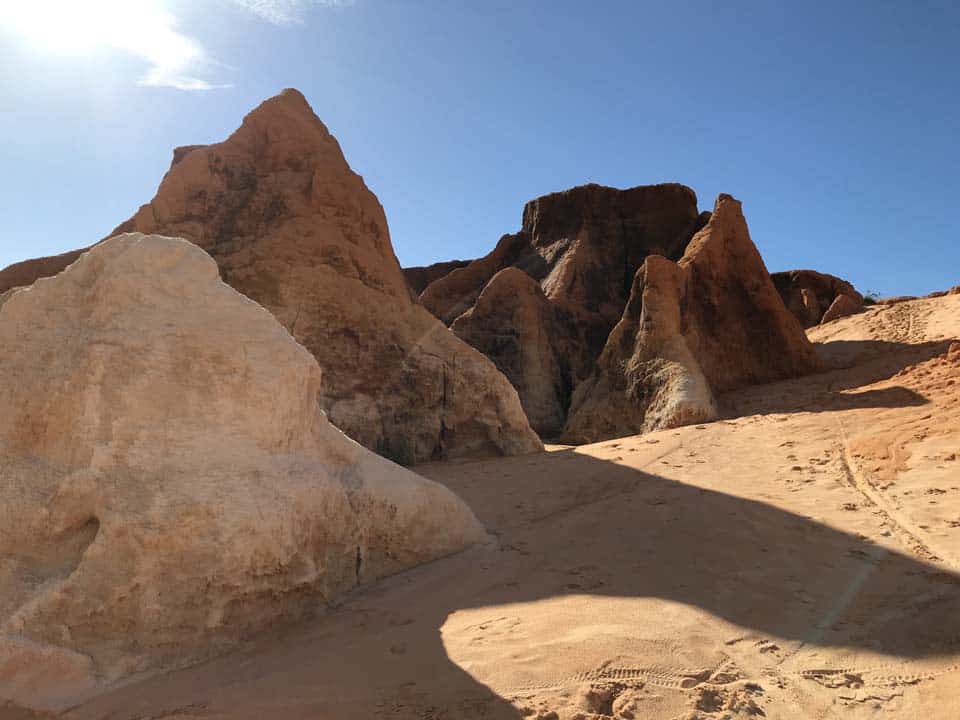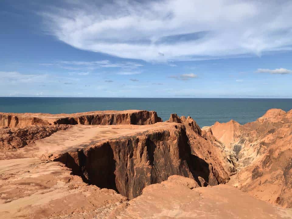 Morro Branco is a small idyllic fishing village. It has grown to 5000 inhabitants, but keeps its original charm. The village is enchanting with its natural beauty, beaches, interesting rock formations and the famous, always changing labyrinth. The beach extends 8 kms which invites long walks. The whole community has a coast length of 54 kms. At the base of the cliffs, there are plenty of fresh water sources. There is nothing better, after a swim in the sea, than to shower off the salt using one of the fresh water sources. When the sea is at low tide natural pools are created all along the beach. They are beautiful.